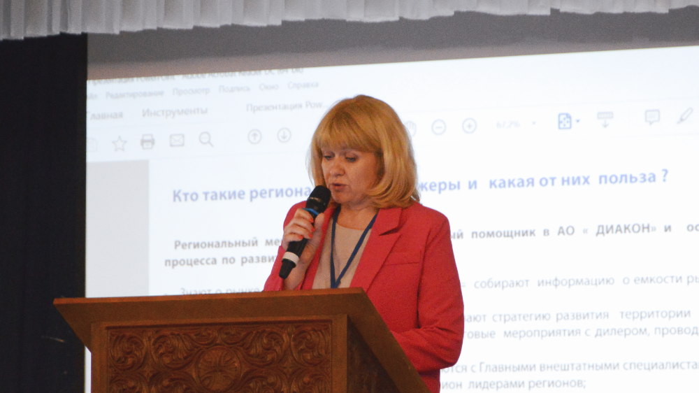 «Да, наша компания развивается, но мы понимаем, что любой бизнес — это не только технологии, производство и экономические показатели, но и люди, с которыми мы работаем», — подчеркнула заместитель коммерческого директора по региональному развитию Наталья Кудря. Она представила команду региональных представителей компании в федеральных округах России и отметила, что это те люди, которые призваны помогать и развивать бизнес партнеров совместно с ДИАКОН.