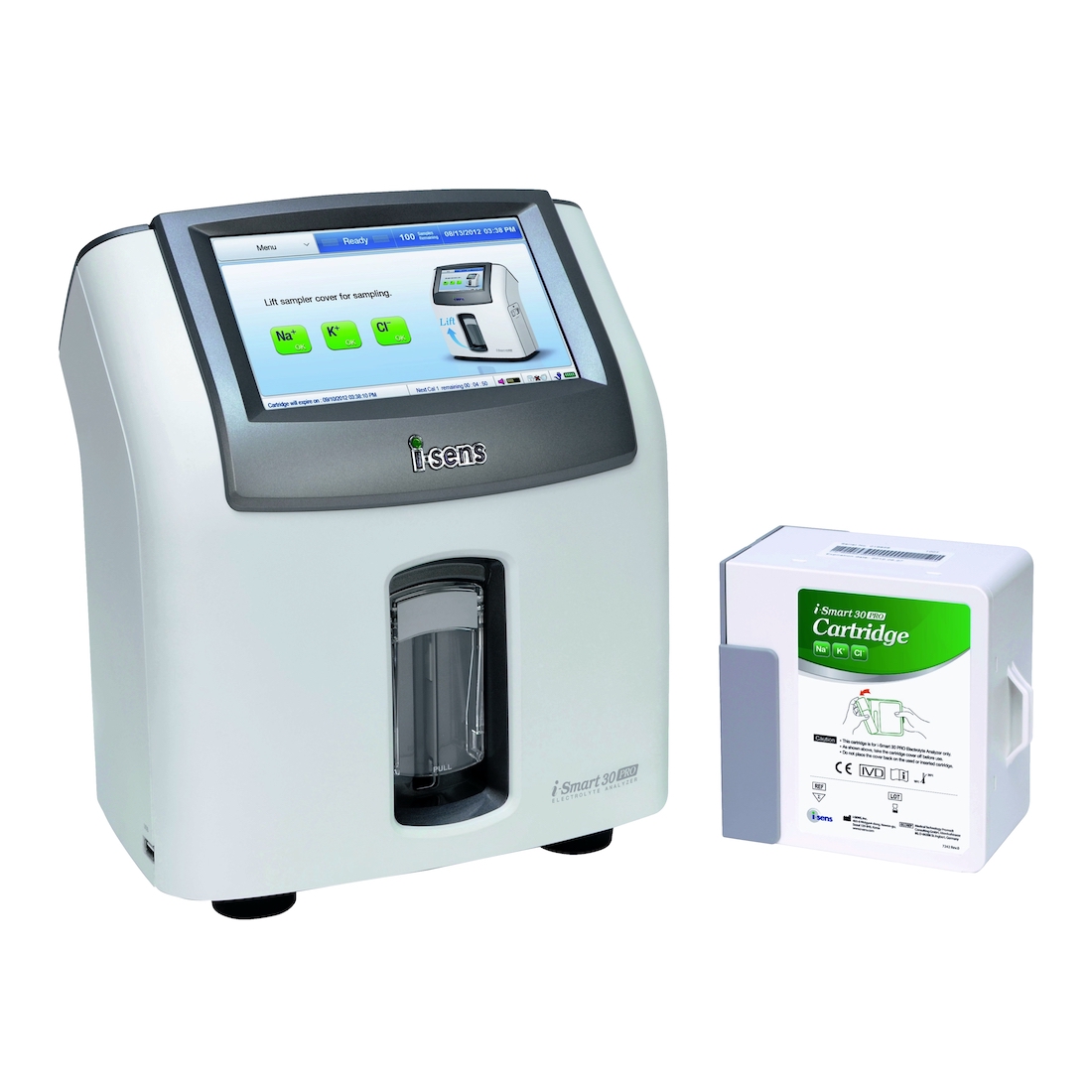 Анализатор электролитов i-Smart 30 PRO производства i-SENS, Inc., Корея, предназначен для количественного определения ионов натрия, калия и хлорид-иона в цельной крови, сыворотке, плазме или моче. Результаты, получаемые с помощью этого прибора, используются для диагностики, контроля и лечения болезней, связанных с дисбалансом электролитов.