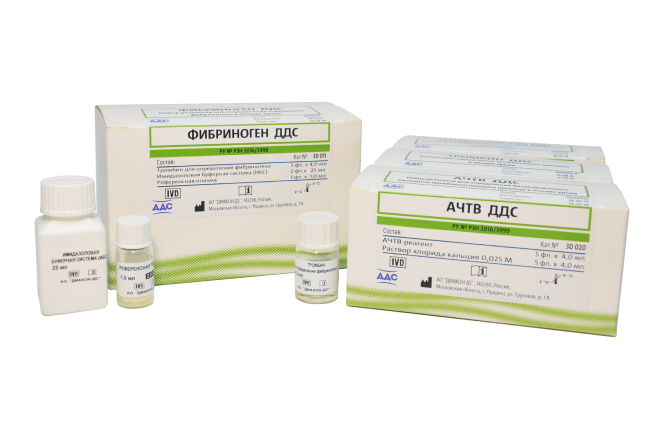 Реагенты ДДС – жидкие реагенты отечественного производства, готовые к использованию и не требующие дополнительных разведений. Реагенты работают практически на всех типах анализаторов, независимо от метода детекции сгустка. При использовании наборов реагентов ДДС необходимо следовать заводским настройкам анализатора, изменив при необходимости объемы смешиваемых реагентов и плазмы, а также время инкубации, указанные в инструкциях к наборам ДДС.