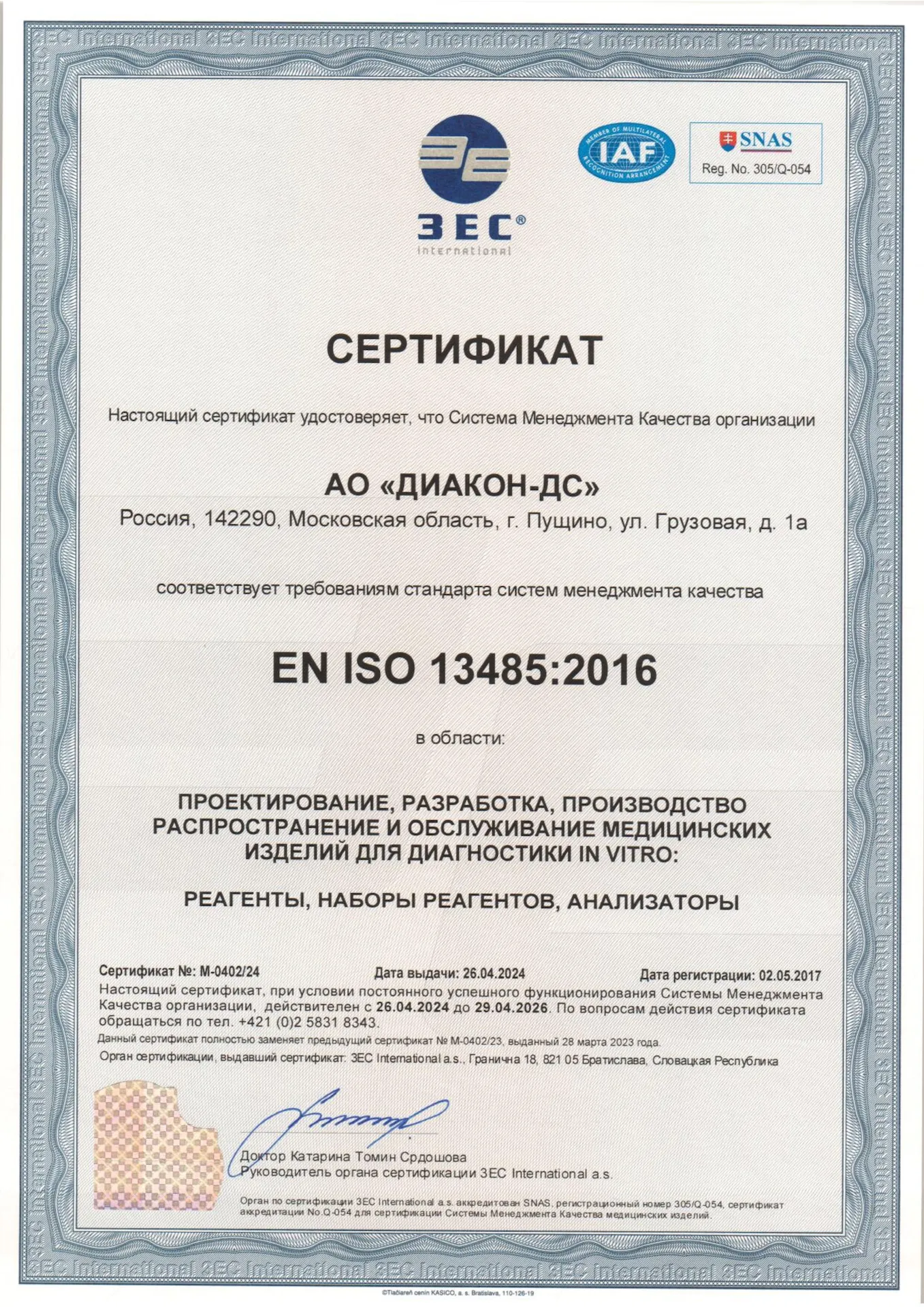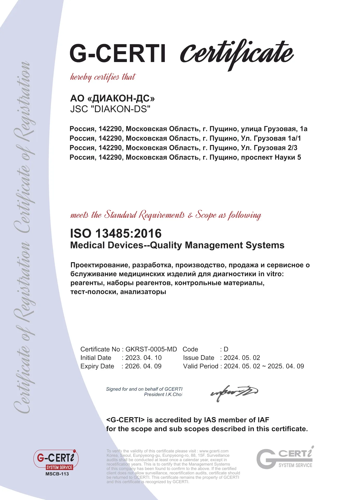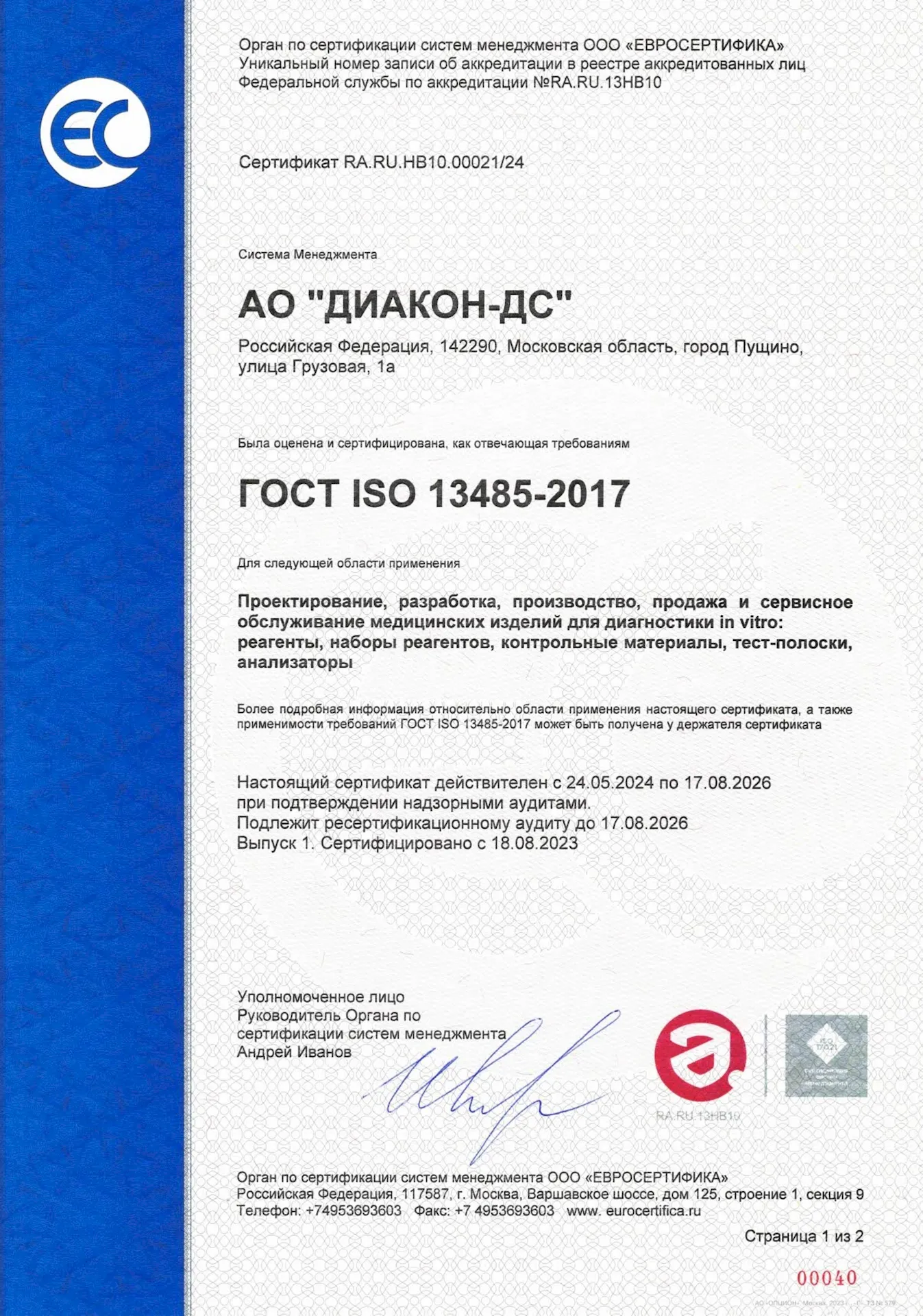 ДИАКОН получил Регистрационное удостоверение №РЗН 2022/18412 на «Экспресс-тест для количественного о...